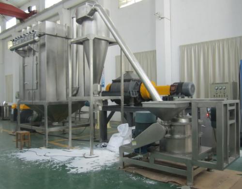 由於避免了“過粉碎”的現象。粉碎室不會產生多餘的熱量。同時,在粉碎室進料端設置風道(必要時可連接冷氣)。由於引風的存在,粉碎時發生的溫度被引風帶走,在粉碎室外套增加了循環水套裝置進一步降低粉碎產生的溫度。